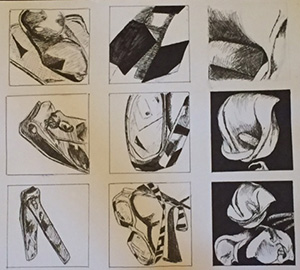 100x Magnification Hand drawn art of everyday items magnified until the are undefinable shapes