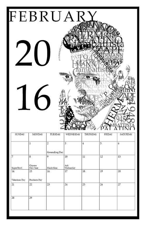 The calendar text as well as the image were all created from the Palatino typeface.